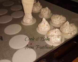 Βάζουμε το μείγμα σε σακούλα χωρίς μύτη και τοποθετούμε σε ρυζόχαρτο φαγώσιμο στρόγγυλο που μπορούμε να βρούμε σε κατάστημα πρώτων υλών ζαχαροπλαστικής ή σε αντικολλητικό χαρτί κατευθείαν μία ποσότητα σαν καρύδι μεγάλο