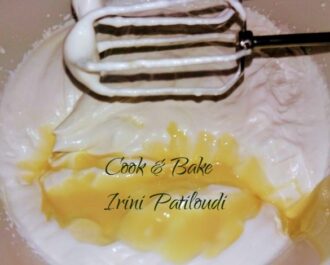 Χτυπάμε την κρέμα γάλακτος σε σαντιγί και προσθέτουμε το ζαχαρούχο.