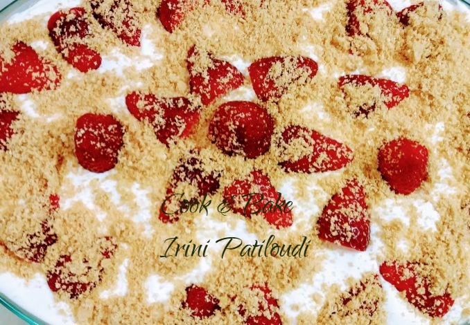 Τεμπέλικο και ελαφρύ γλυκό ψυγείου με φράουλες, μπισκότο και σαντιγί,