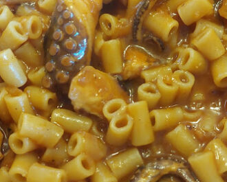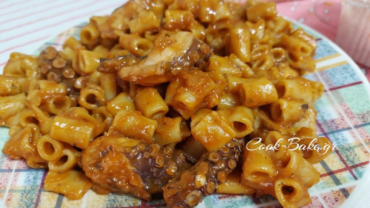 Χταπόδι κοκκινιστό με κοφτό μακαρονάκι
