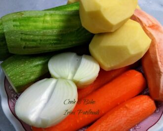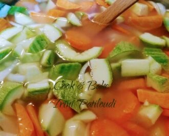 Τα βάζουμε στην κατσαρόλα που έχει το νερό που βράσαμε το ψάρι. Αν θέλουμε να είμαστε σίγουροι πως δεν θα έχει αγκάθια η σούπα πριν ρίξουμε τα λαχανικά σουρώνουμε το νερό σε σουρωτήρι/σίτα.