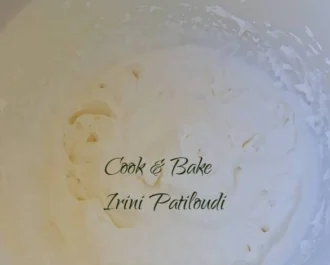 Χτυπάμε την παγωμένη κρέμα γάλακτος στο μίξερ και έπειτα την ανακατεύουμε με την κρέμα πατισερί που ήταν τόση ώρα στο ψυγείο.