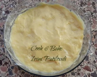 Σκεπάζουμε την κρέμα με μεμβράνη που εφάπτεται στην επιφάνεια της και την αφήνουμε 2 ώρες στο ψυγείο.