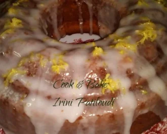 Για το γλάσο, χτυπάμε χυμό από 1 λεμόνι και άχνη ζάχαρη όσο πάρει μέχρι να γίνει ένας παχύρευστος χυλός ο οποίος θ απαγώσει μετά επάνω στο κέικ.
